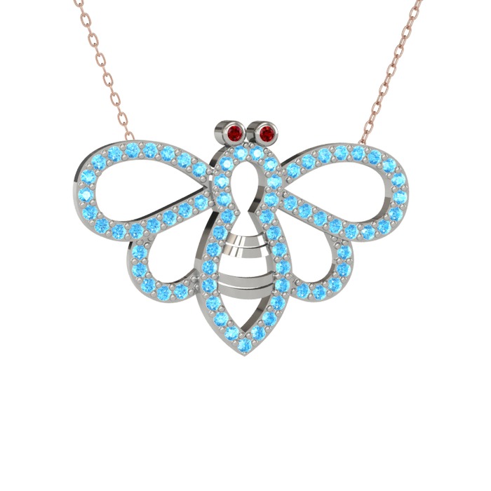 Garnet ve akuamarin 14 ayar beyaz altın kolye (40 cm rose altın rolo zincir)