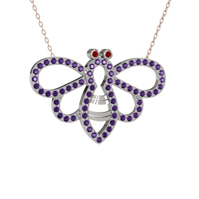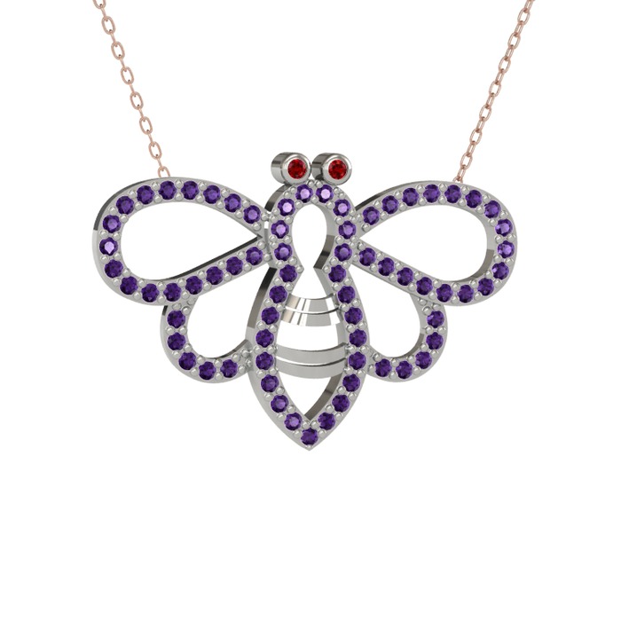 Garnet ve ametist 925 ayar gümüş kolye (40 cm rose altın rolo zincir)