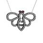 Garnet ve beyaz zirkon 925 ayar siyah rodyum kaplama gümüş kolye (40 cm gümüş rolo zincir)
