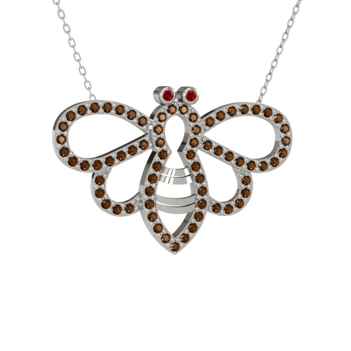 Garnet ve dumanlı kuvars 18 ayar beyaz altın kolye (40 cm beyaz altın rolo zincir)