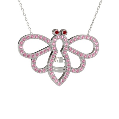 Garnet ve pembe kuvars 925 ayar gümüş kolye (40 cm beyaz altın rolo zincir)