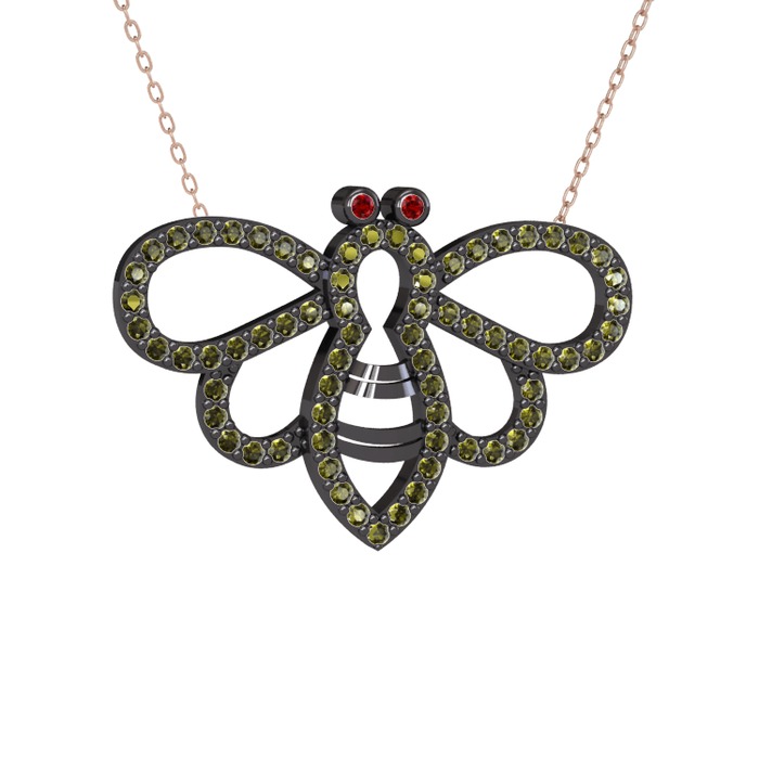 Garnet ve peridot 925 ayar siyah rodyum kaplama gümüş kolye (40 cm rose altın rolo zincir)