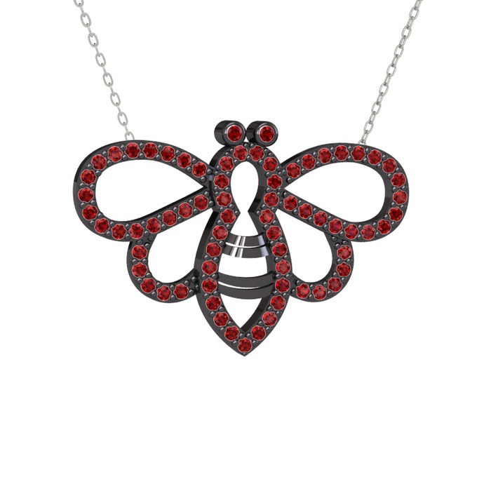 Garnet 925 ayar siyah rodyum kaplama gümüş kolye (40 cm beyaz altın rolo zincir)