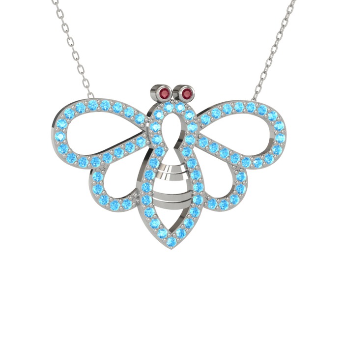 Kök yakut ve akuamarin 8 ayar beyaz altın kolye (40 cm beyaz altın rolo zincir)