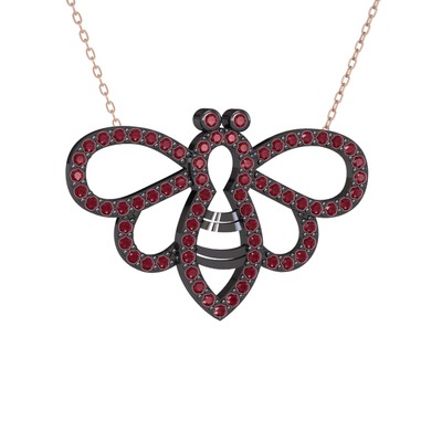 Kök yakut ve kök zümrüt 925 ayar siyah rodyum kaplama gümüş kolye (40 cm rose altın rolo zincir)