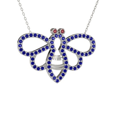 Kök yakut ve lab safir 18 ayar beyaz altın kolye (40 cm beyaz altın rolo zincir)