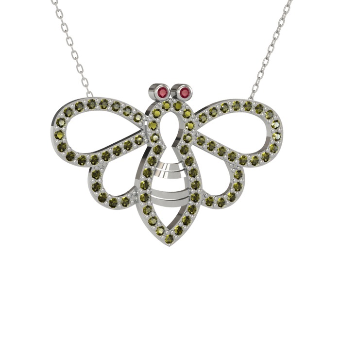 Kök yakut ve peridot 925 ayar gümüş kolye (40 cm beyaz altın rolo zincir)