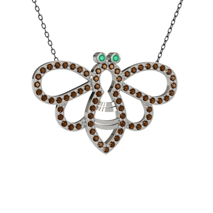 Kök zümrüt ve dumanlı kuvars 14 ayar beyaz altın kolye (40 cm gümüş rolo zincir)