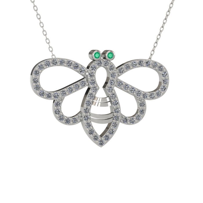 Kök zümrüt ve pırlanta 14 ayar beyaz altın kolye (0.737 karat, 40 cm beyaz altın rolo zincir)