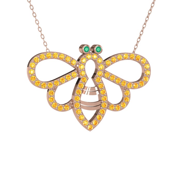 Kök zümrüt ve sitrin 18 ayar rose altın kolye (40 cm rose altın rolo zincir)