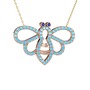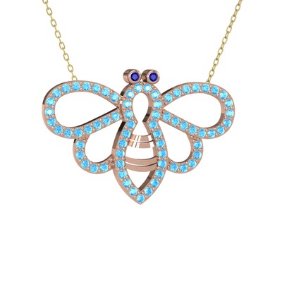 Lab safir ve akuamarin 925 ayar rose altın kaplama gümüş kolye (40 cm altın rolo zincir)