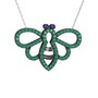 Lab safir ve kök yakut 925 ayar siyah rodyum kaplama gümüş kolye (40 cm beyaz altın rolo zincir)