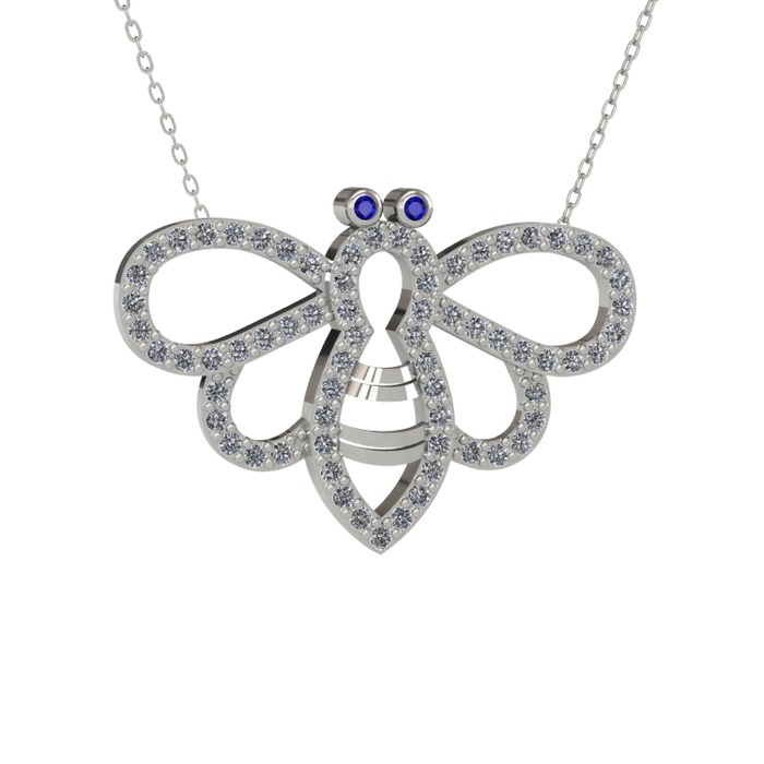 Lab safir ve pırlanta 8 ayar beyaz altın kolye (0.737 karat, 40 cm beyaz altın rolo zincir)