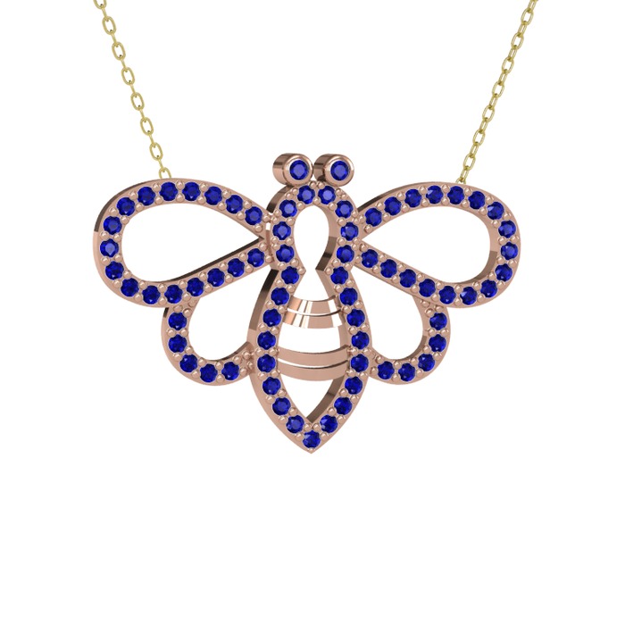 Lab safir 925 ayar rose altın kaplama gümüş kolye (40 cm altın rolo zincir)