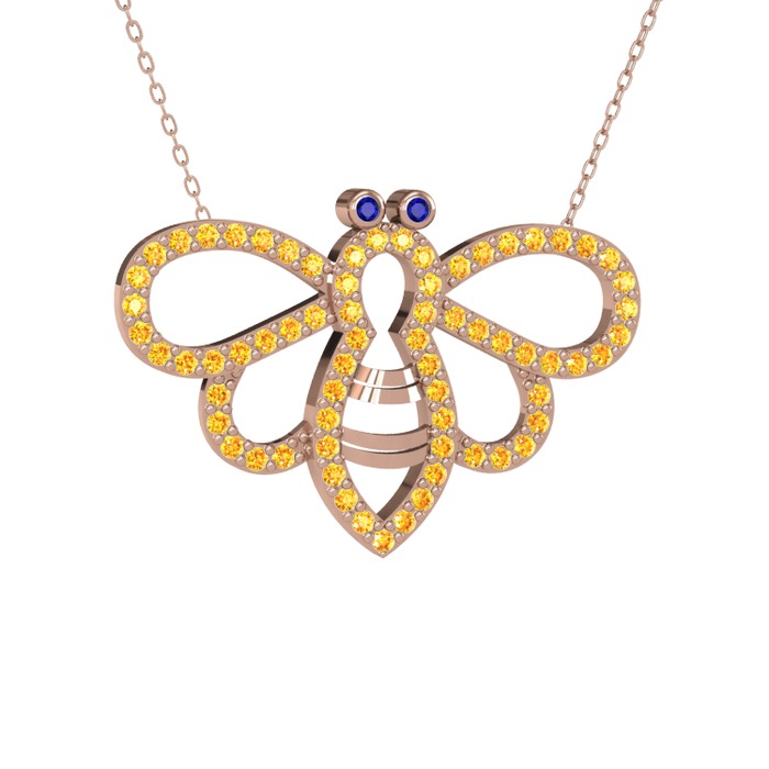 Lab safir ve sitrin 925 ayar rose altın kaplama gümüş kolye (40 cm gümüş rolo zincir)