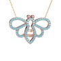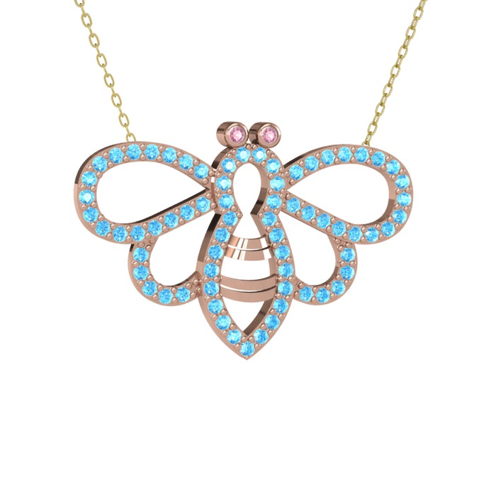 Pembe kuvars ve akuamarin 925 ayar rose altın kaplama gümüş kolye (40 cm altın rolo zincir)