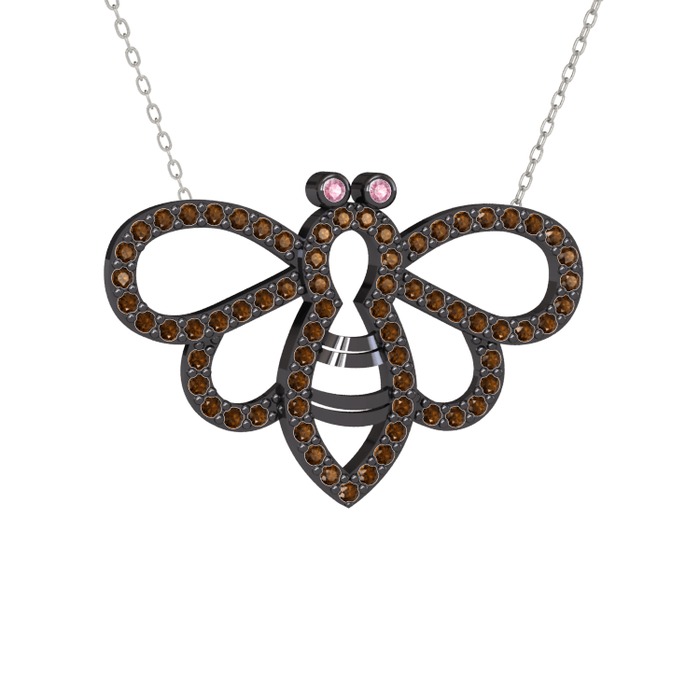 Pembe kuvars ve dumanlı kuvars 925 ayar siyah rodyum kaplama gümüş kolye (40 cm gümüş rolo zincir)