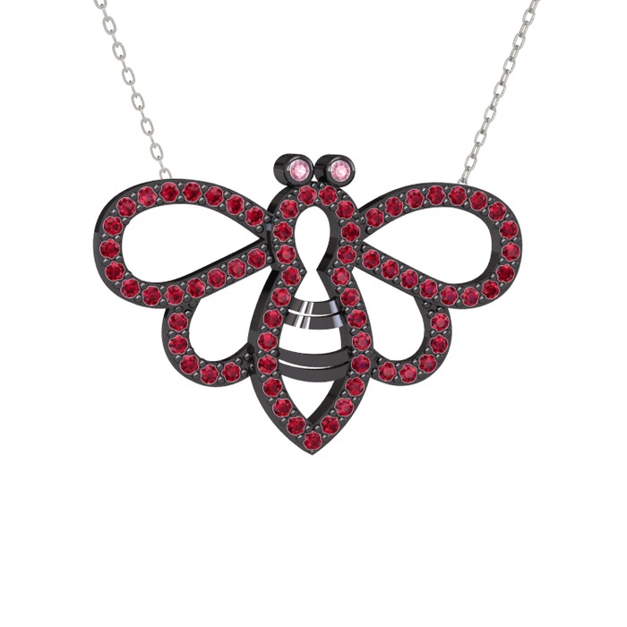 Pembe kuvars ve rodolit garnet 925 ayar siyah rodyum kaplama gümüş kolye (40 cm beyaz altın rolo zincir)