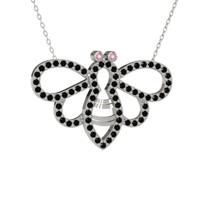Pembe kuvars ve siyah zirkon 925 ayar gümüş kolye (40 cm beyaz altın rolo zincir)