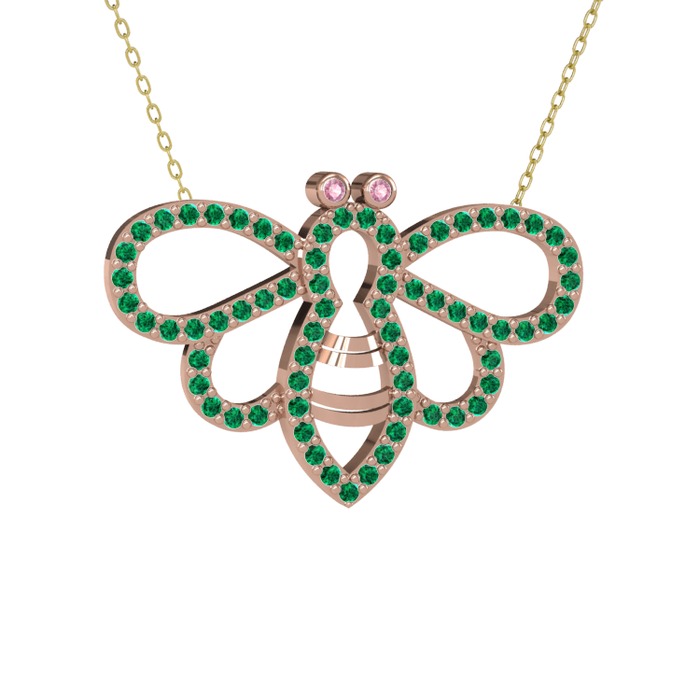 Pembe kuvars ve yeşil kuvars 14 ayar rose altın kolye (40 cm altın rolo zincir)