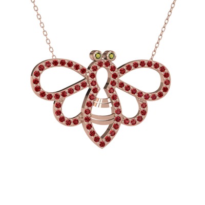 Peridot ve garnet 8 ayar rose altın kolye (40 cm rose altın rolo zincir)