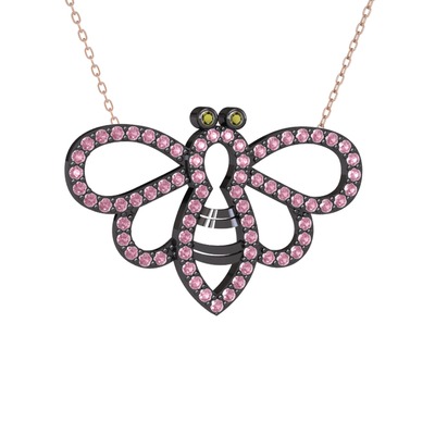 Peridot ve pembe kuvars 925 ayar siyah rodyum kaplama gümüş kolye (40 cm rose altın rolo zincir)