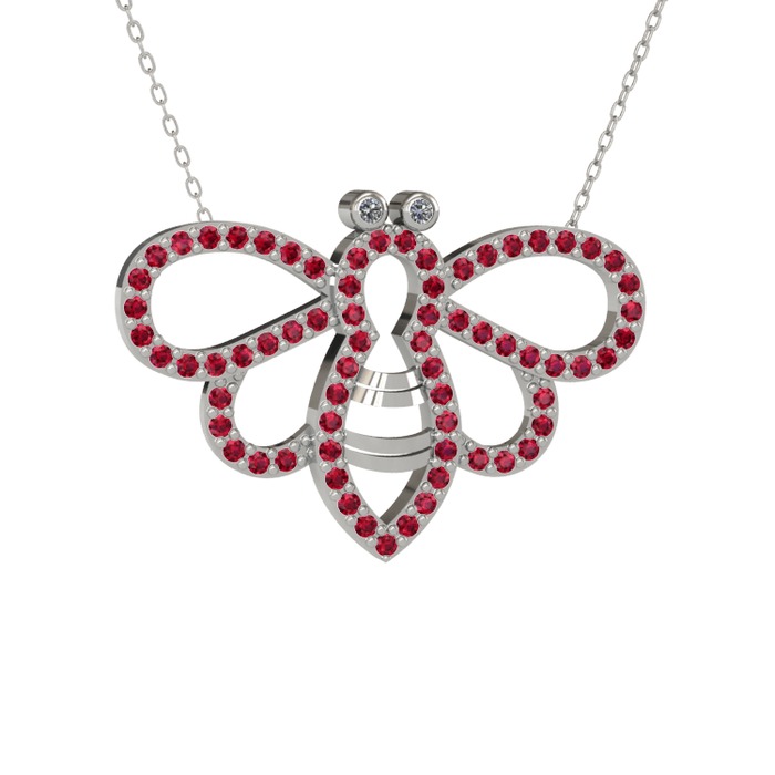 Pırlanta ve rodolit garnet 18 ayar beyaz altın kolye (0.022 karat, 40 cm beyaz altın rolo zincir)