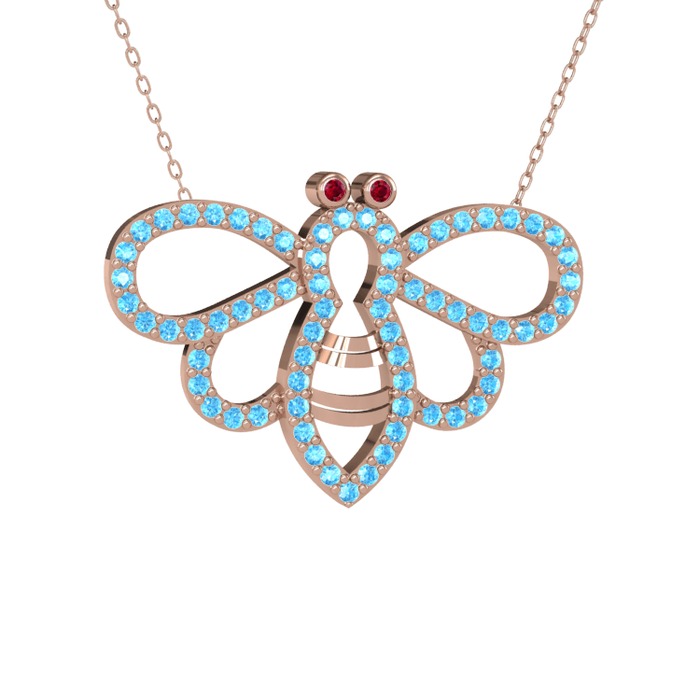 Rodolit garnet ve akuamarin 14 ayar rose altın kolye (40 cm rose altın rolo zincir)