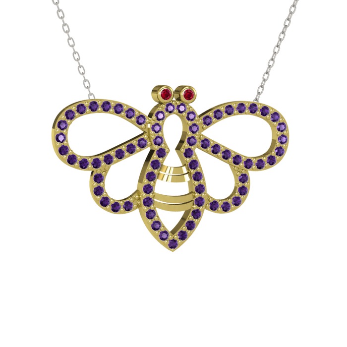 Rodolit garnet ve ametist 18 ayar altın kolye (40 cm beyaz altın rolo zincir)