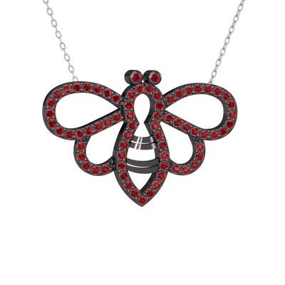 Rodolit garnet ve garnet 925 ayar siyah rodyum kaplama gümüş kolye (40 cm beyaz altın rolo zincir)