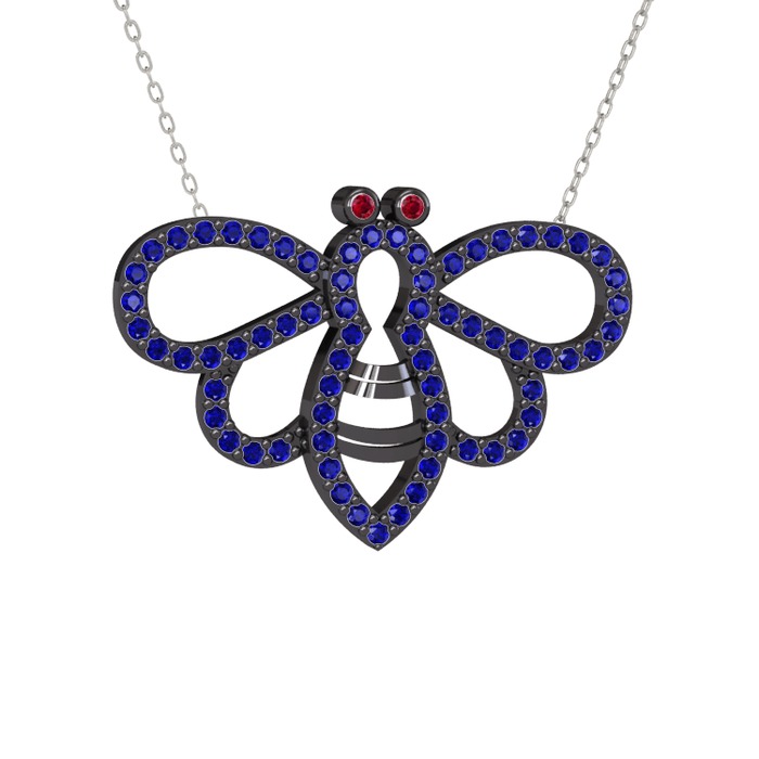 Rodolit garnet ve lab safir 925 ayar siyah rodyum kaplama gümüş kolye (40 cm beyaz altın rolo zincir)