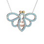 Sitrin ve akuamarin 925 ayar rose altın kaplama gümüş kolye (40 cm beyaz altın rolo zincir)