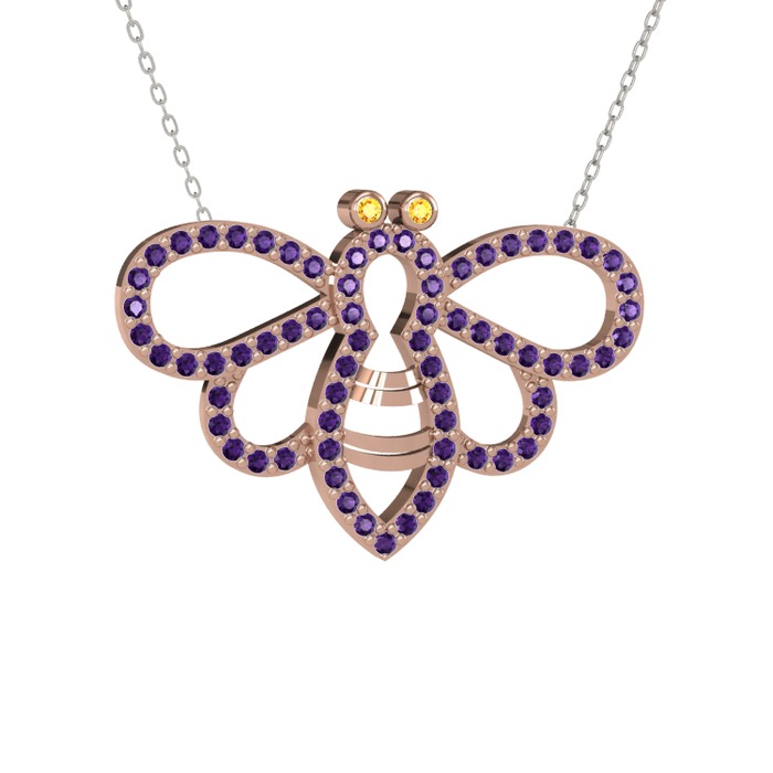 Sitrin ve ametist 14 ayar rose altın kolye (40 cm gümüş rolo zincir)