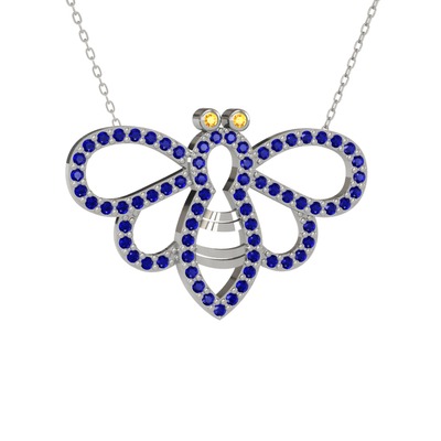 Sitrin ve lab safir 14 ayar beyaz altın kolye (40 cm gümüş rolo zincir)