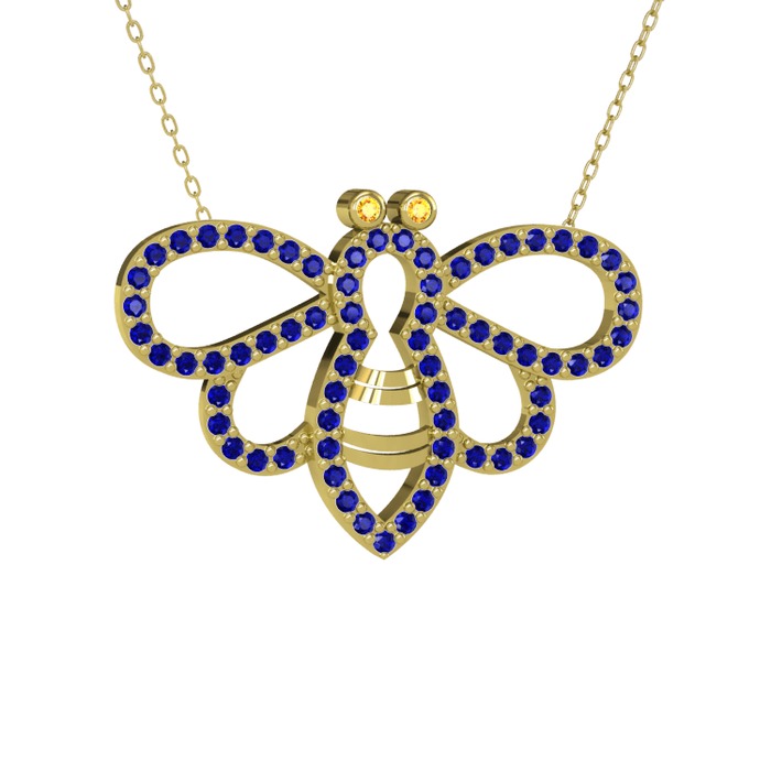Sitrin ve lab safir 8 ayar altın kolye (40 cm altın rolo zincir)