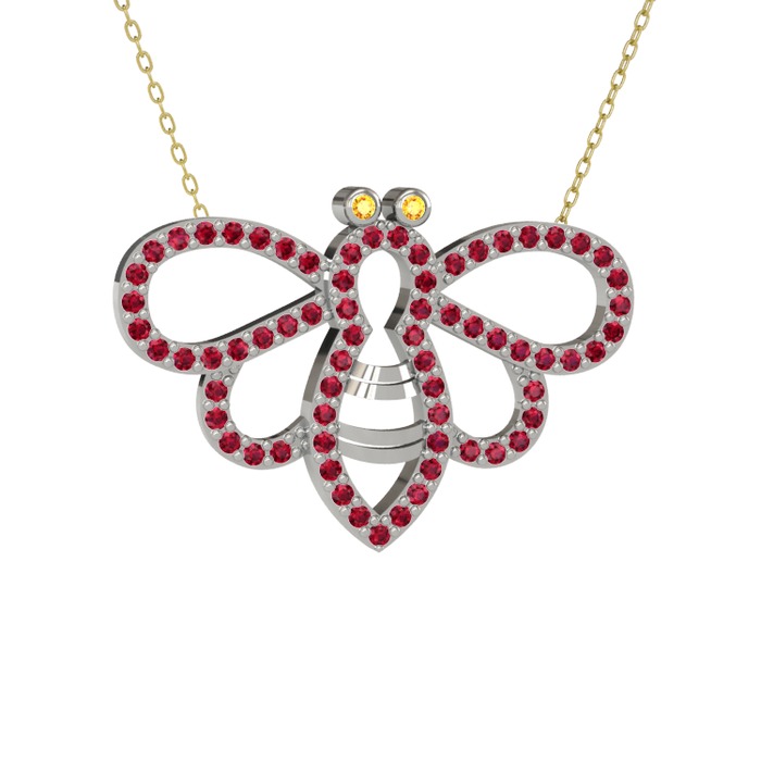 Sitrin ve rodolit garnet 14 ayar beyaz altın kolye (40 cm altın rolo zincir)