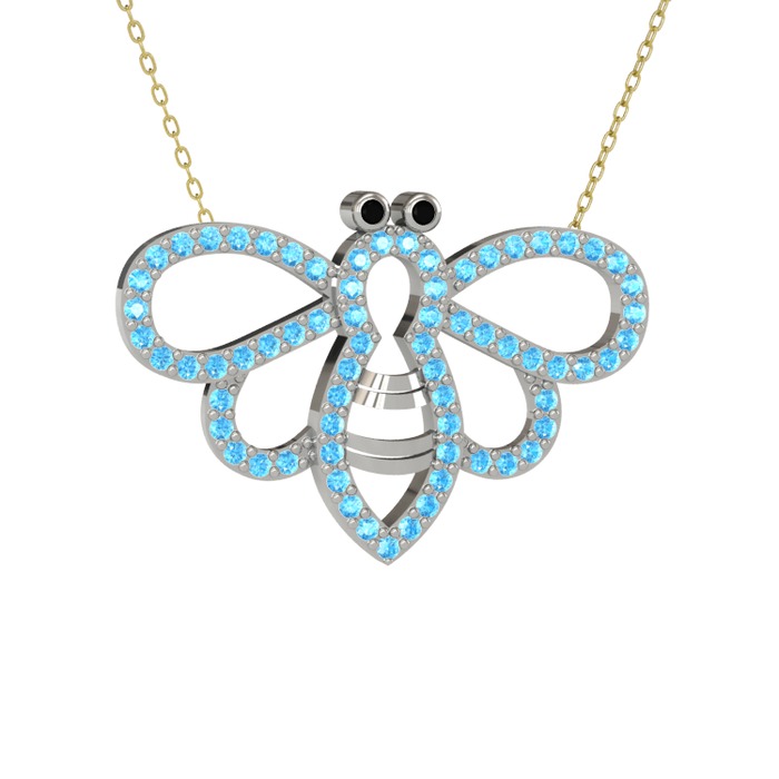 Siyah zirkon ve akuamarin 8 ayar beyaz altın kolye (40 cm altın rolo zincir)