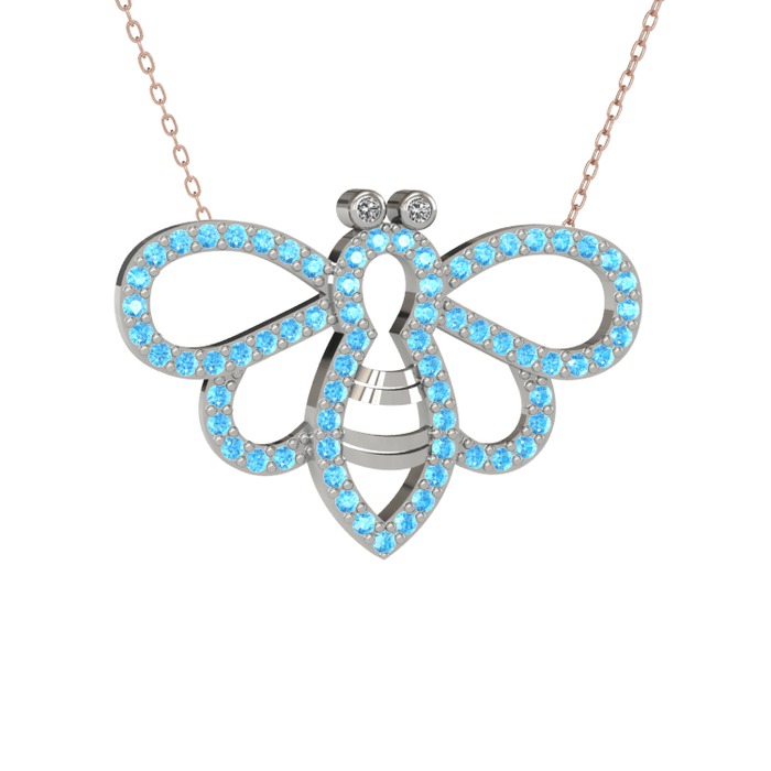 Swarovski ve akuamarin 18 ayar beyaz altın kolye (40 cm gümüş rolo zincir)