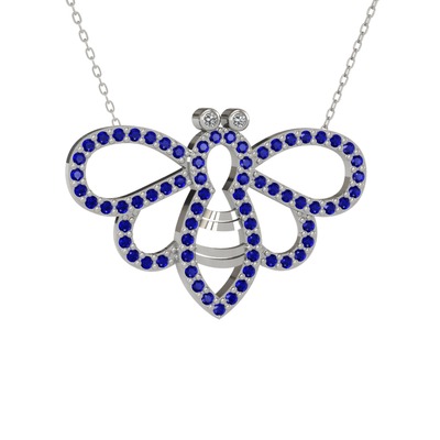 Swarovski ve lab safir 925 ayar gümüş kolye (40 cm beyaz altın rolo zincir)
