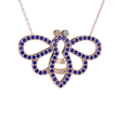 Swarovski ve lab safir 925 ayar rose altın kaplama gümüş kolye (40 cm rose altın rolo zincir)