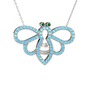 Yeşil kuvars ve akuamarin 8 ayar beyaz altın kolye (40 cm beyaz altın rolo zincir)