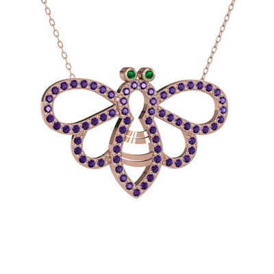 Yeşil kuvars ve ametist 18 ayar rose altın kolye (40 cm rose altın rolo zincir)