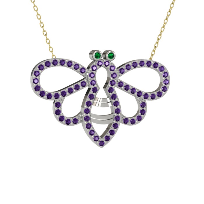 Yeşil kuvars ve ametist 925 ayar gümüş kolye (40 cm altın rolo zincir)