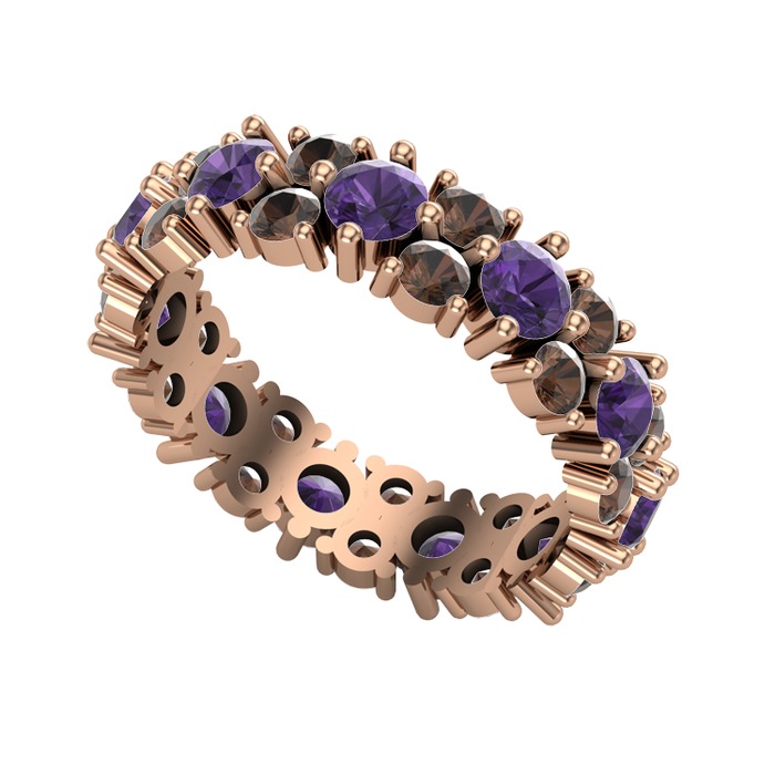 Ametist ve dumanlı kuvars 8 ayar rose altın yüzük