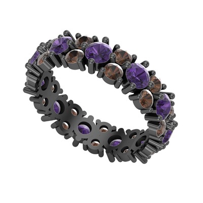 Ametist ve dumanlı kuvars 925 ayar siyah rodyum kaplama gümüş yüzük
