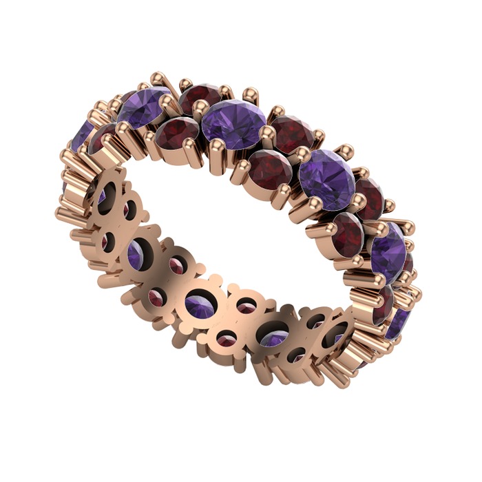 Ametist ve kök yakut 14 ayar rose altın yüzük