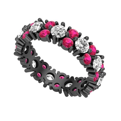 Beyaz zirkon ve rodolit garnet 925 ayar siyah rodyum kaplama gümüş yüzük