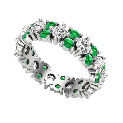 Beyaz zirkon ve yeşil kuvars 14 ayar beyaz altın yüzük