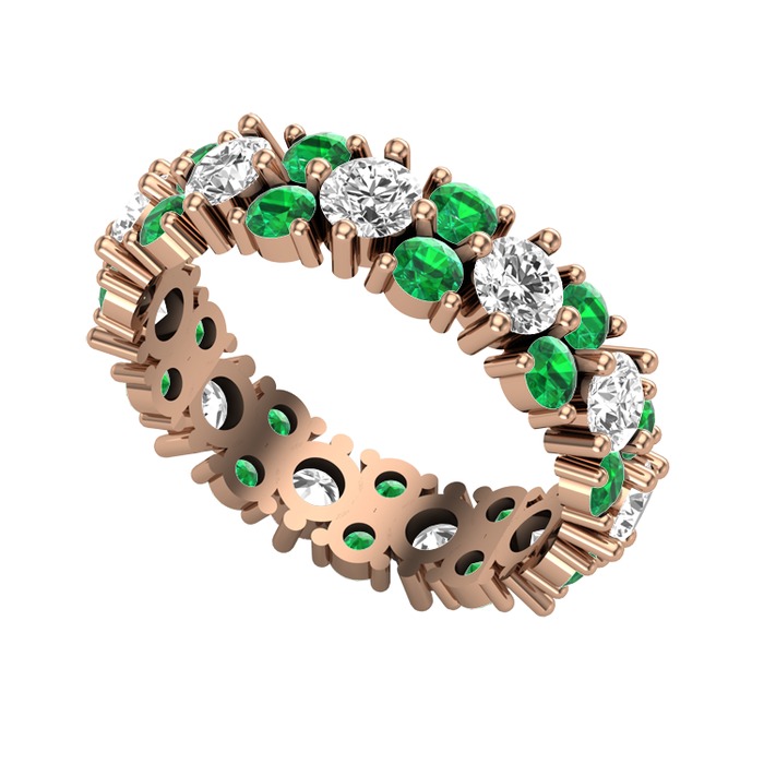 Beyaz zirkon ve yeşil kuvars 18 ayar rose altın yüzük