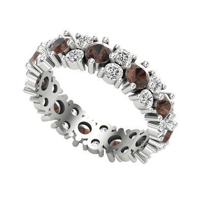 Dumanlı kuvars ve beyaz zirkon 14 ayar beyaz altın yüzük